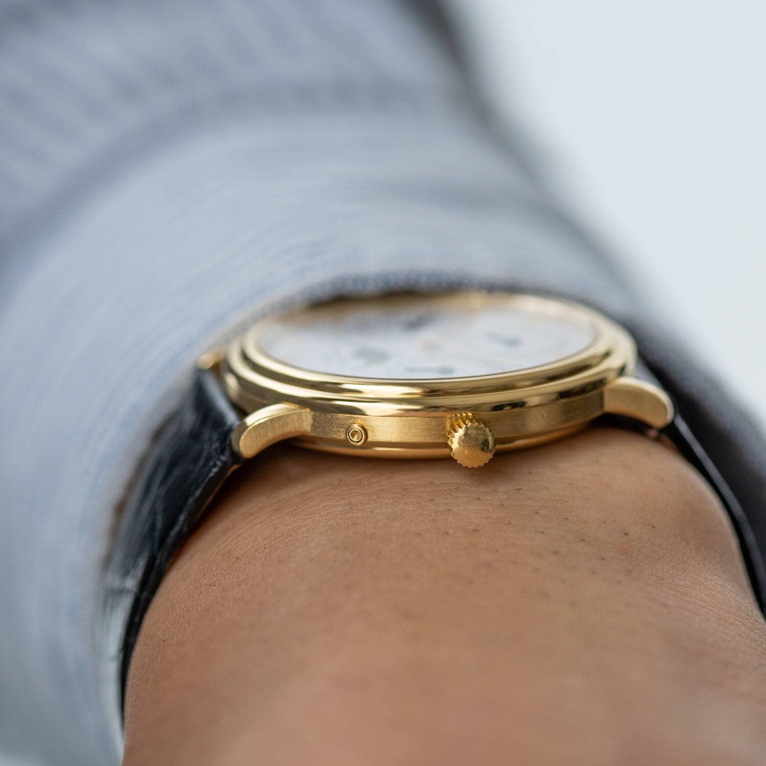 It featured the ingenious design of a stepped bezel and the world's thinnest movement for a self-winding perpetual calendar then.