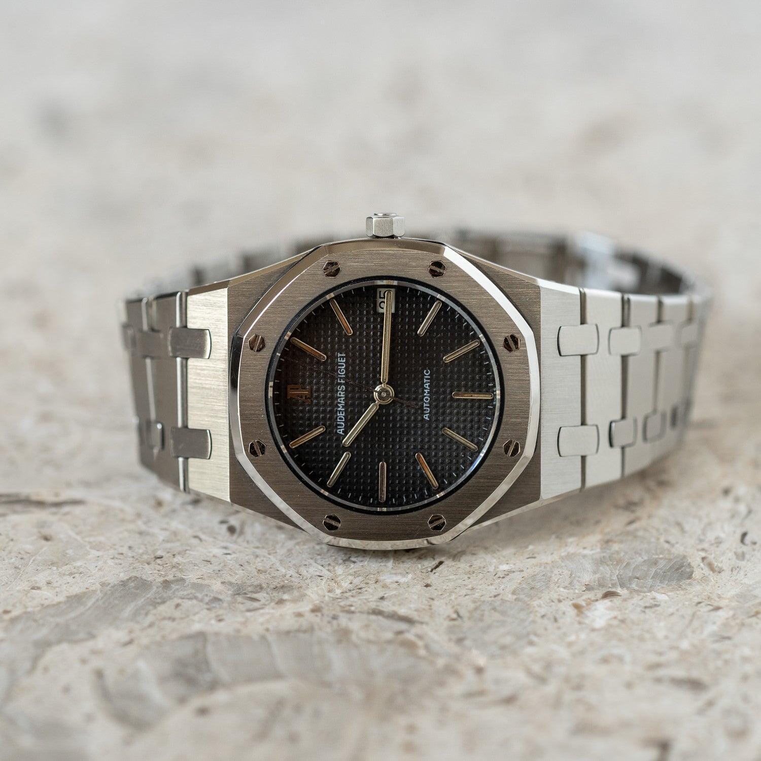 こちらのRef.4100STは初代ロイヤルオーク(Ref.5402)から遅れること数年、ミドルサイズのケースで発売されたモデルです。(後にRef.14100表記となったため、4100/14100は同じ時計です)