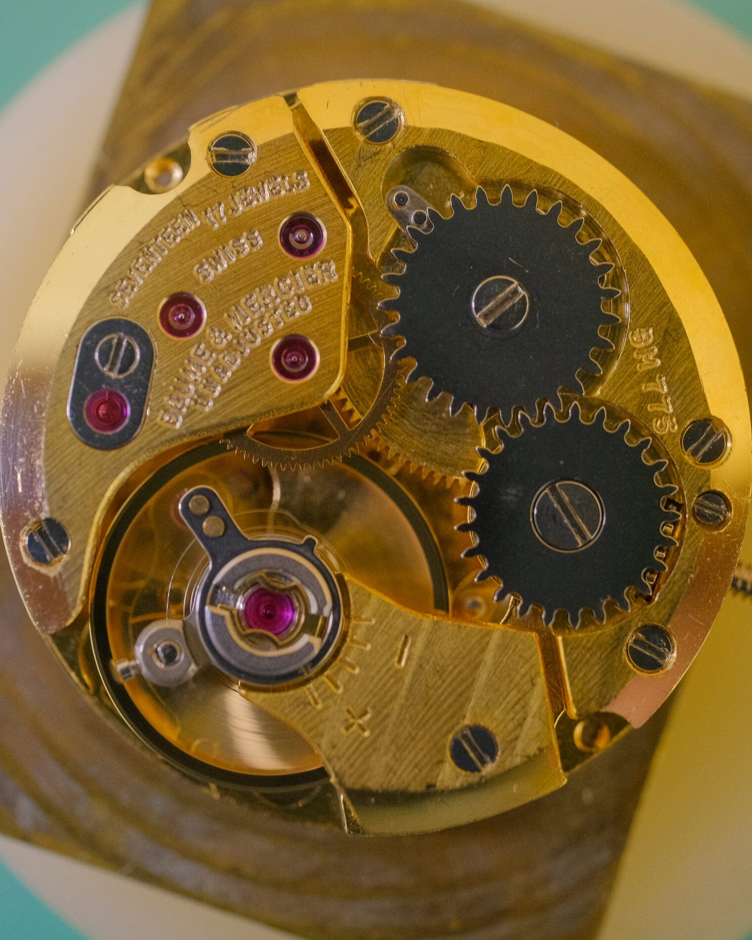 The installed movement is a hand-wound caliber BM775. This moevent is based on ETA's Cal.2512 and has a gold finish.