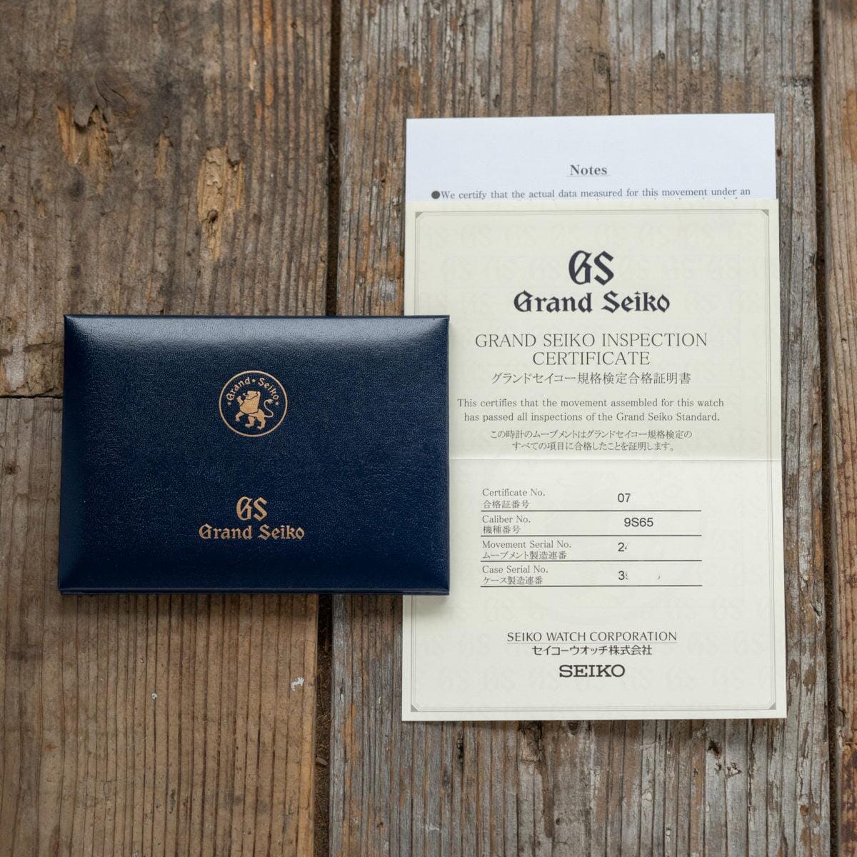 Includes: Box, Original Bracelet, SEIKO Leather Strap, Genuine Buckle, Guarantee, Grand Seiko Inspection Certification
