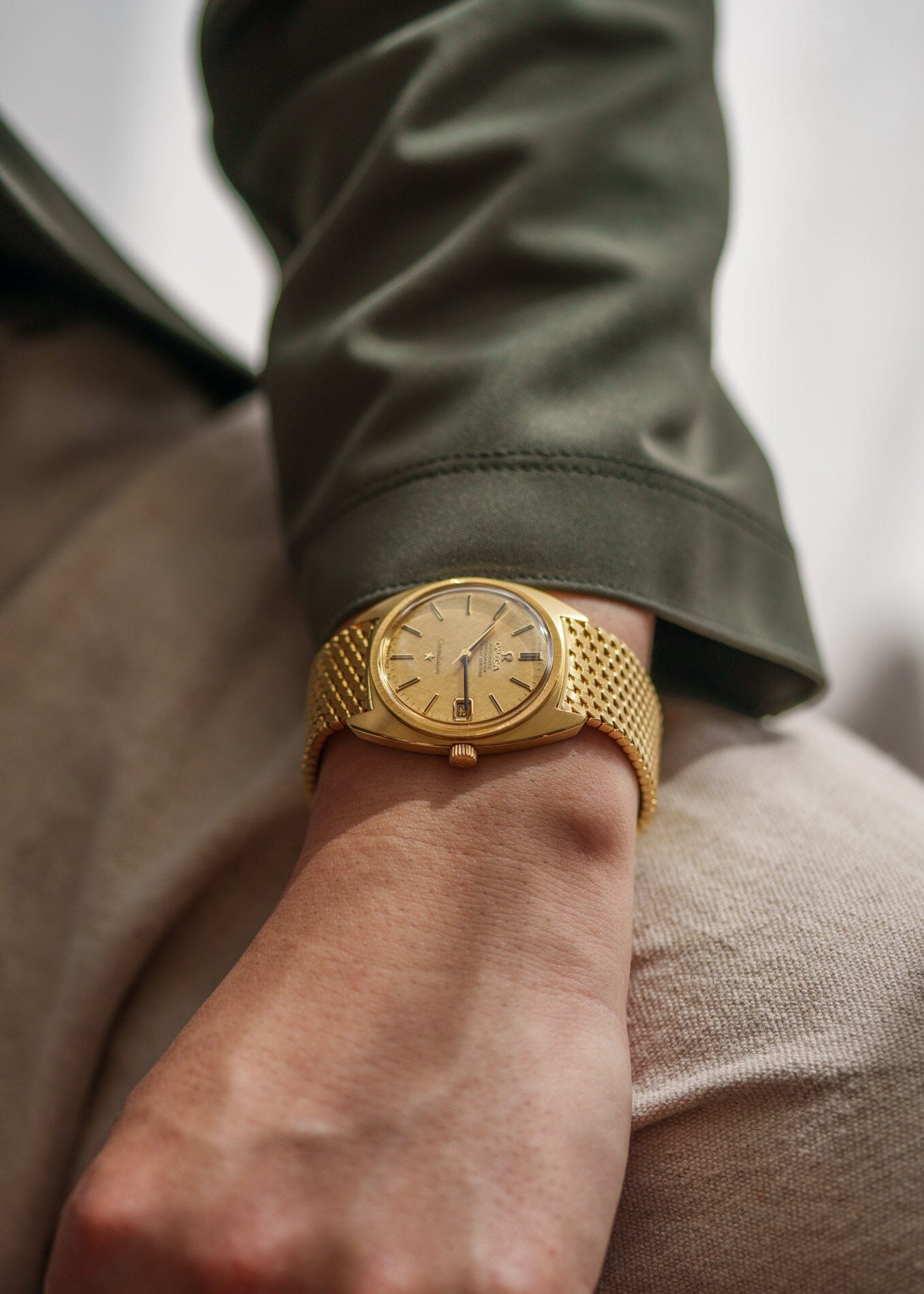 18K yellow gold Constellation watches are not particularly rare, but they are much less common when they come with genuine 18K bracelet. In addition, the case, dial, movement, and bracelet are all in excellent condition, which makes this watch a great value.