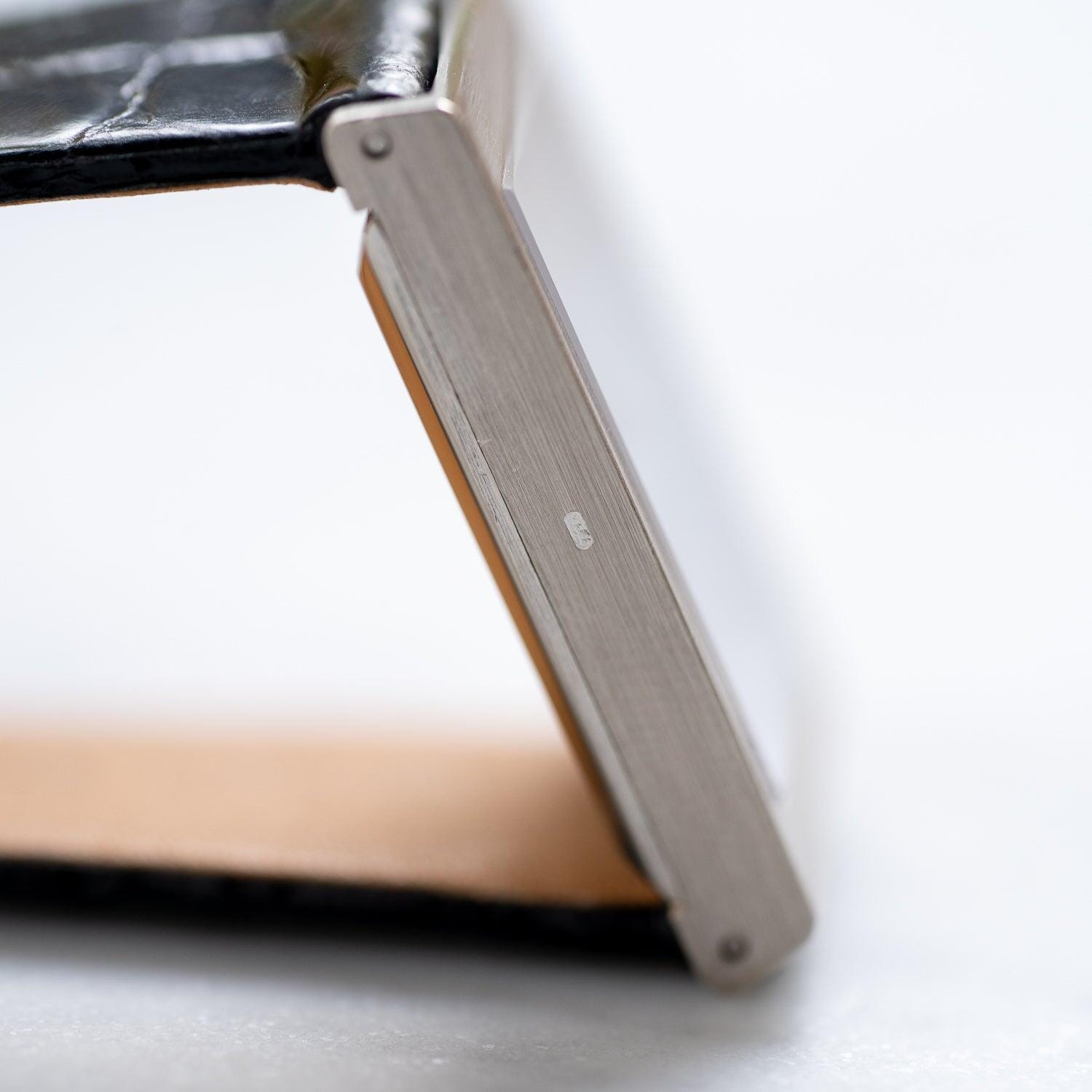 case has a slightly trapezoidal shape when viewed from the side, which is a rare design for Cellini, which feels a little thick.