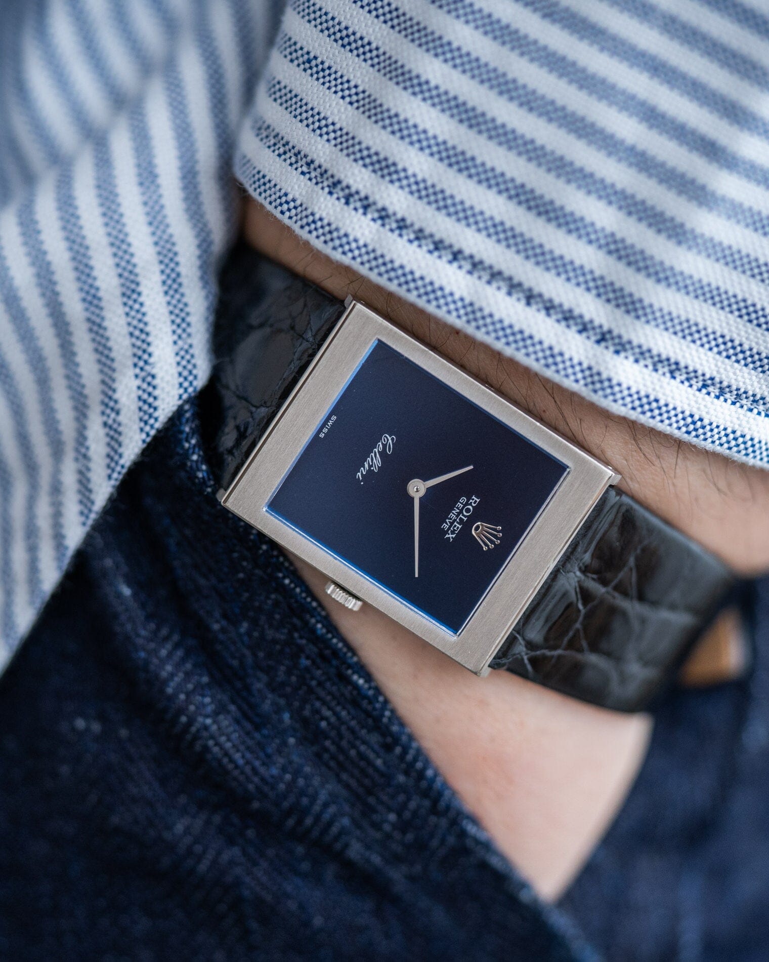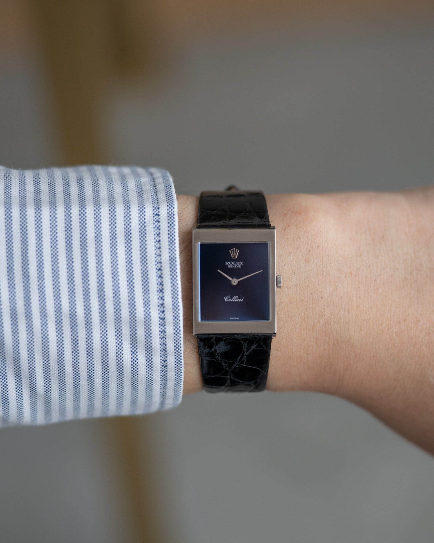 Rolex Cellini 4014 WG Rectangle Navy Dial