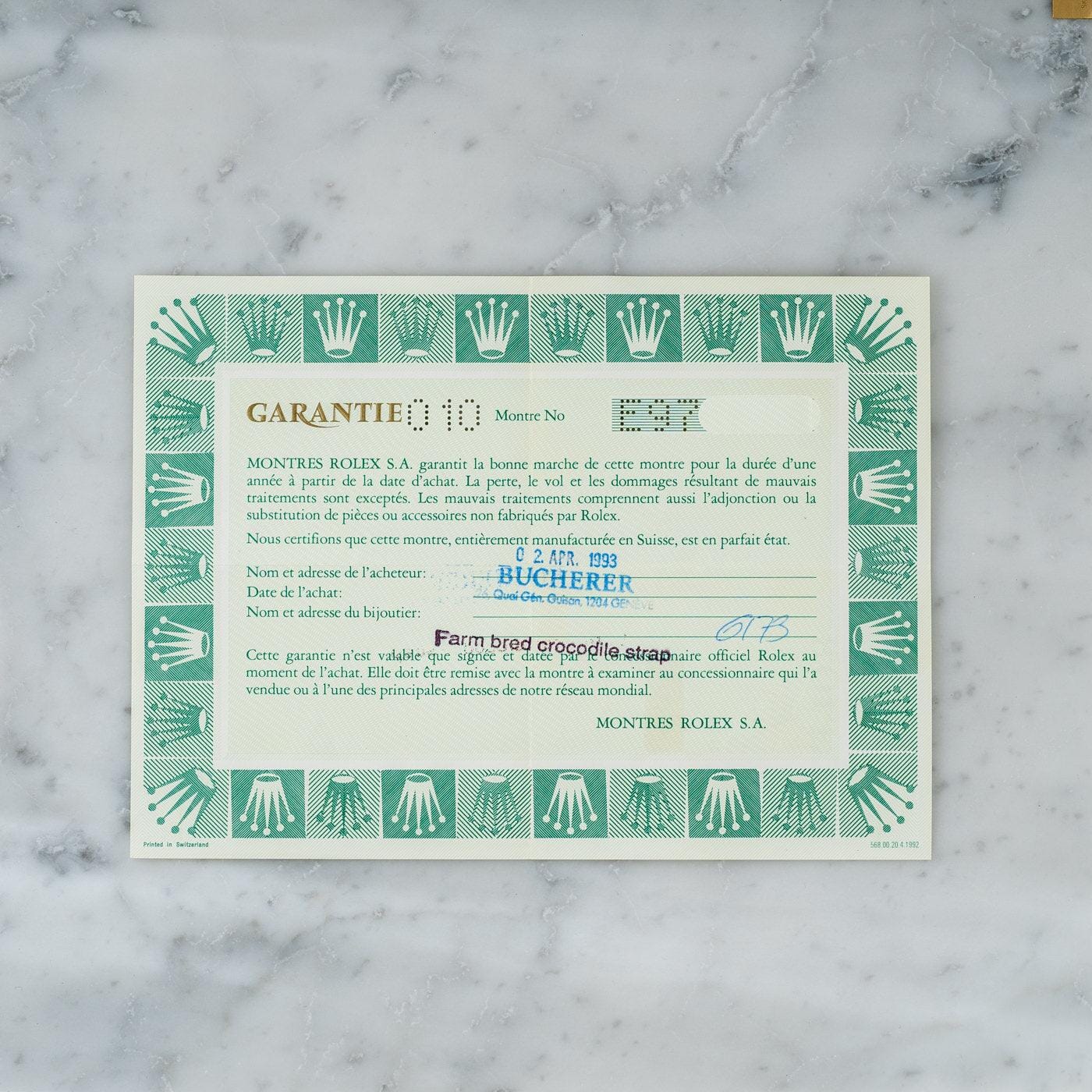 Includes: Box, Guarantee Paper, Instructions, Genuine Leather Strap, Genuine 18K YG Buckle