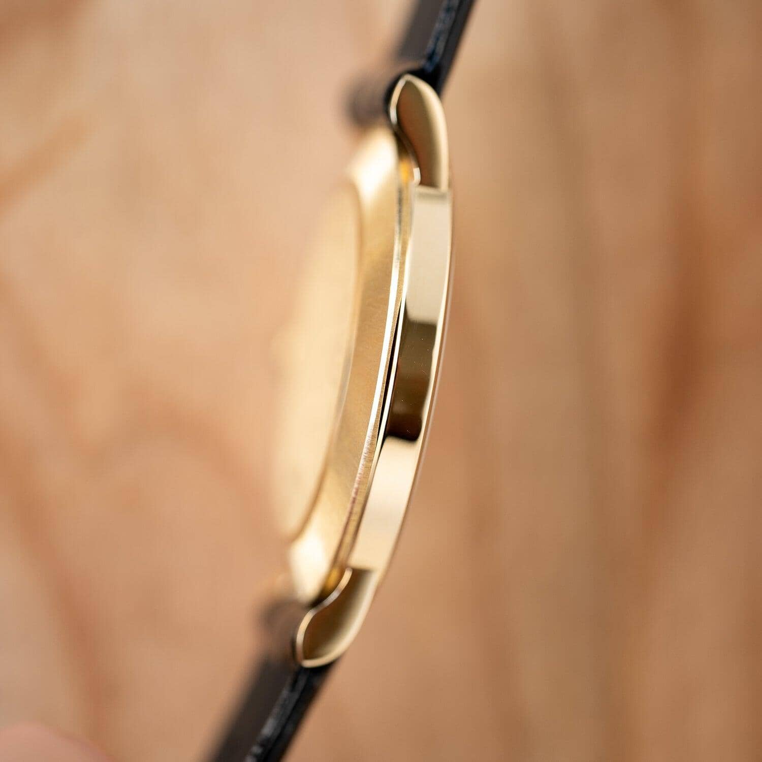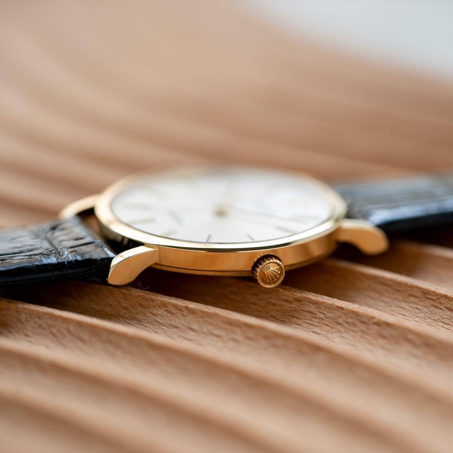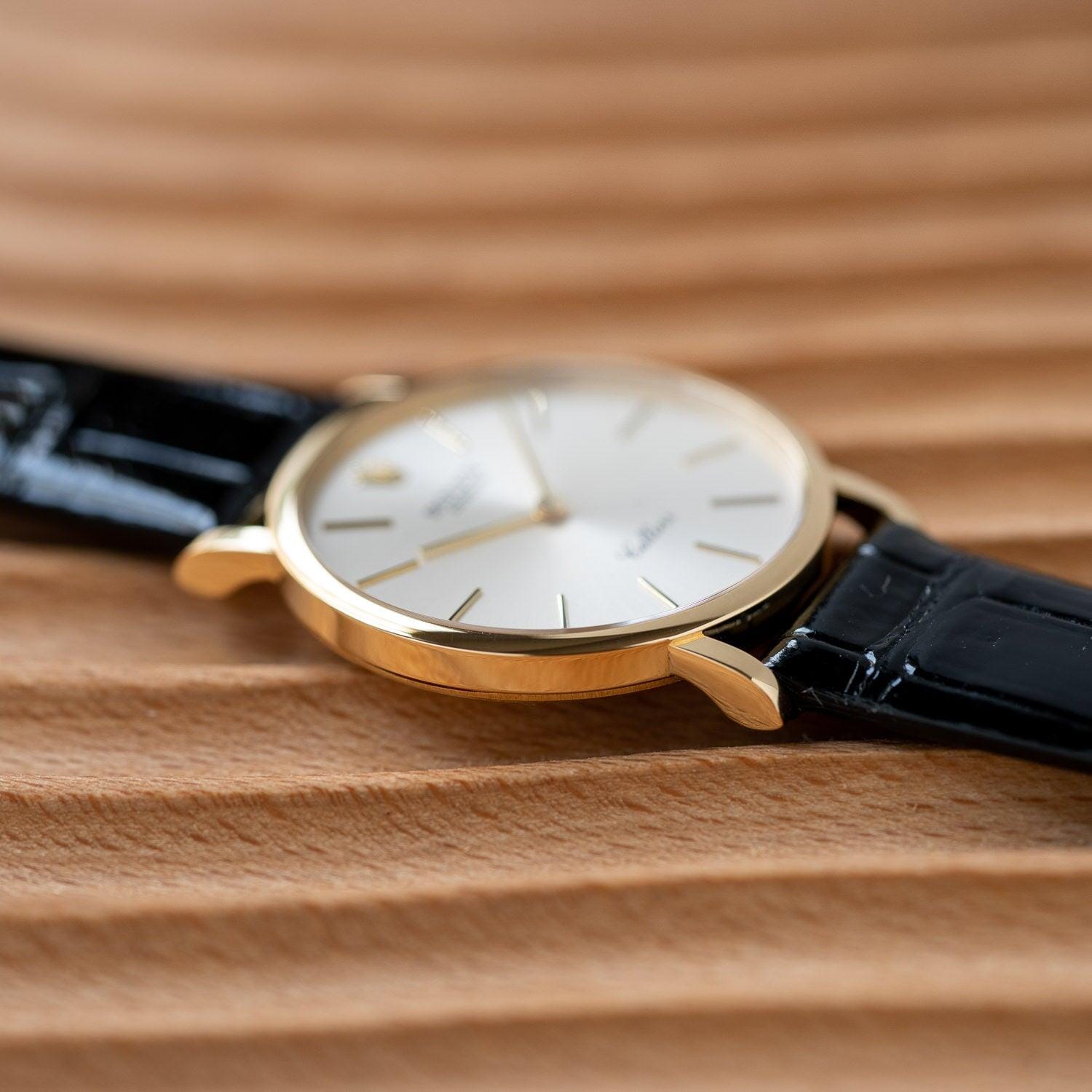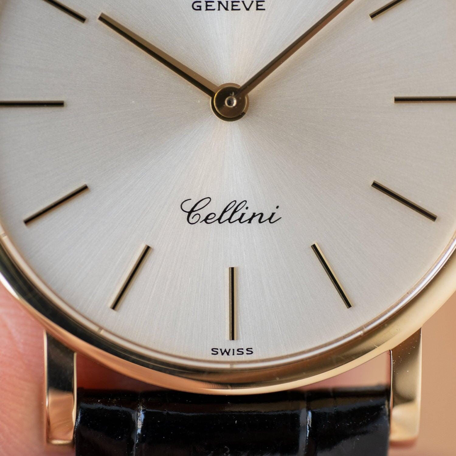The material of the case is Cellini, which is produced only in gold or platinum, but there are countless variations in the combination of the case, dial and hands.
