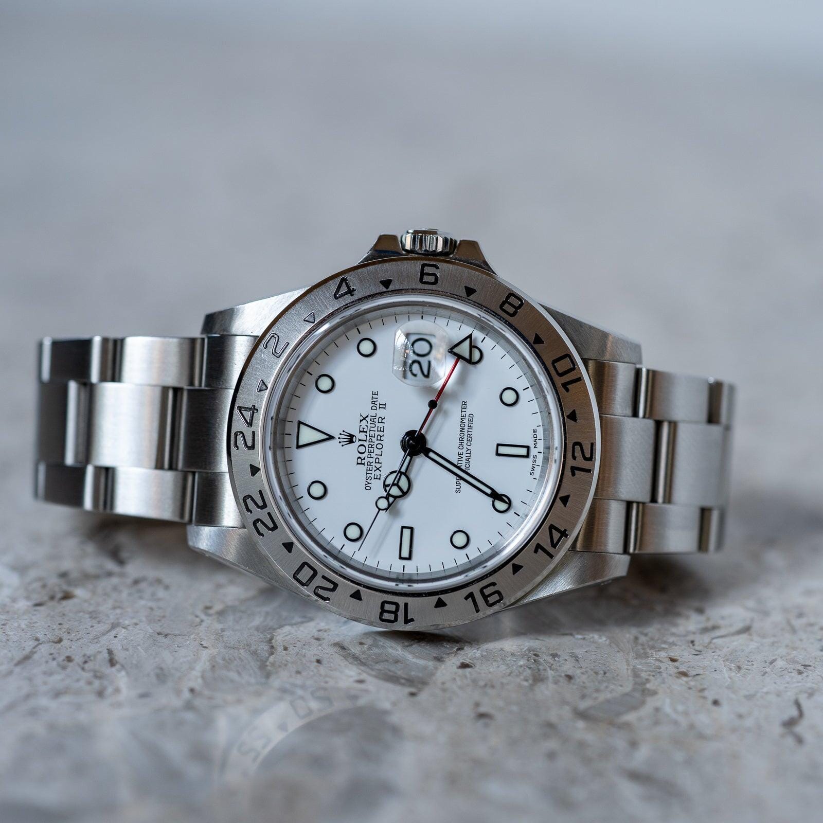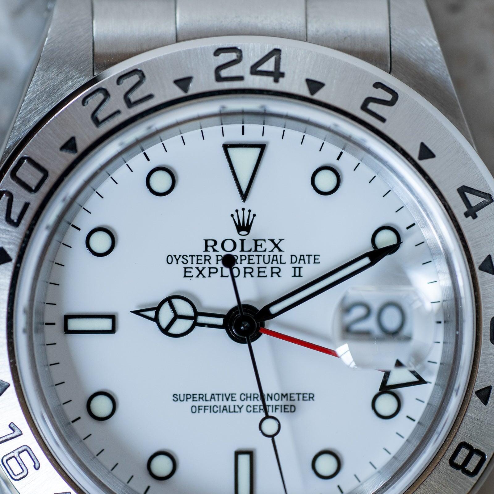 This EXII has a black dial and was produced in 2004, so the luminous on the indexes and hands is Luminova.