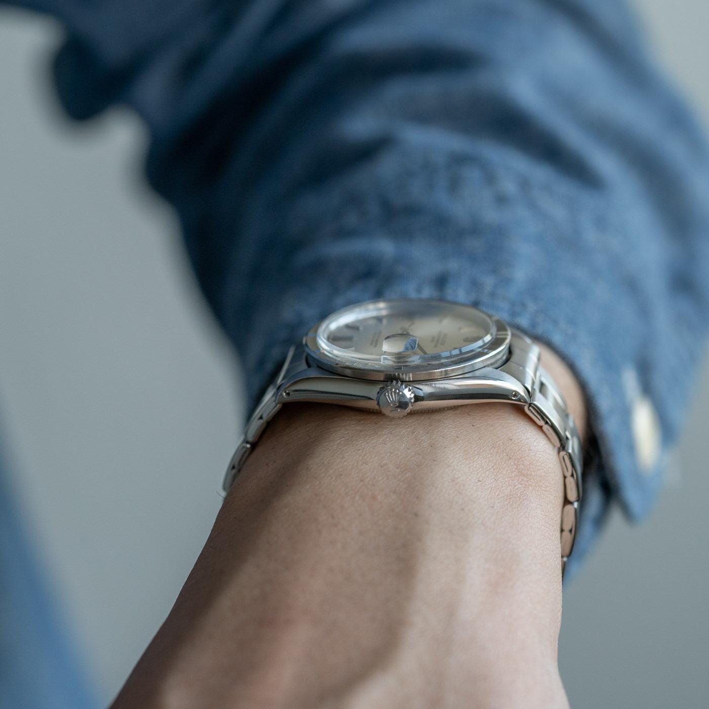 ロレックスの3大発明のうち防水性能と優れた耐久性を持つ「オイスターケース」、両方向に回転するローターを搭載した自動巻き「パーペチュアル機構」の2つを備えたロレックスの原点とも言えるモデルが「オイスターパーペチュアル」なのです。