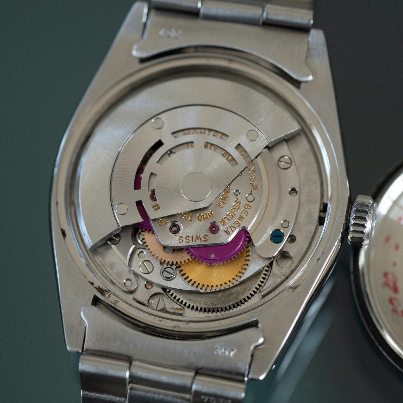 ロレックス社製ムーブメントの中でも、精度と耐久性のバランスが取れた傑作ムーブメントで、現行ムーブメントの原型になっています。