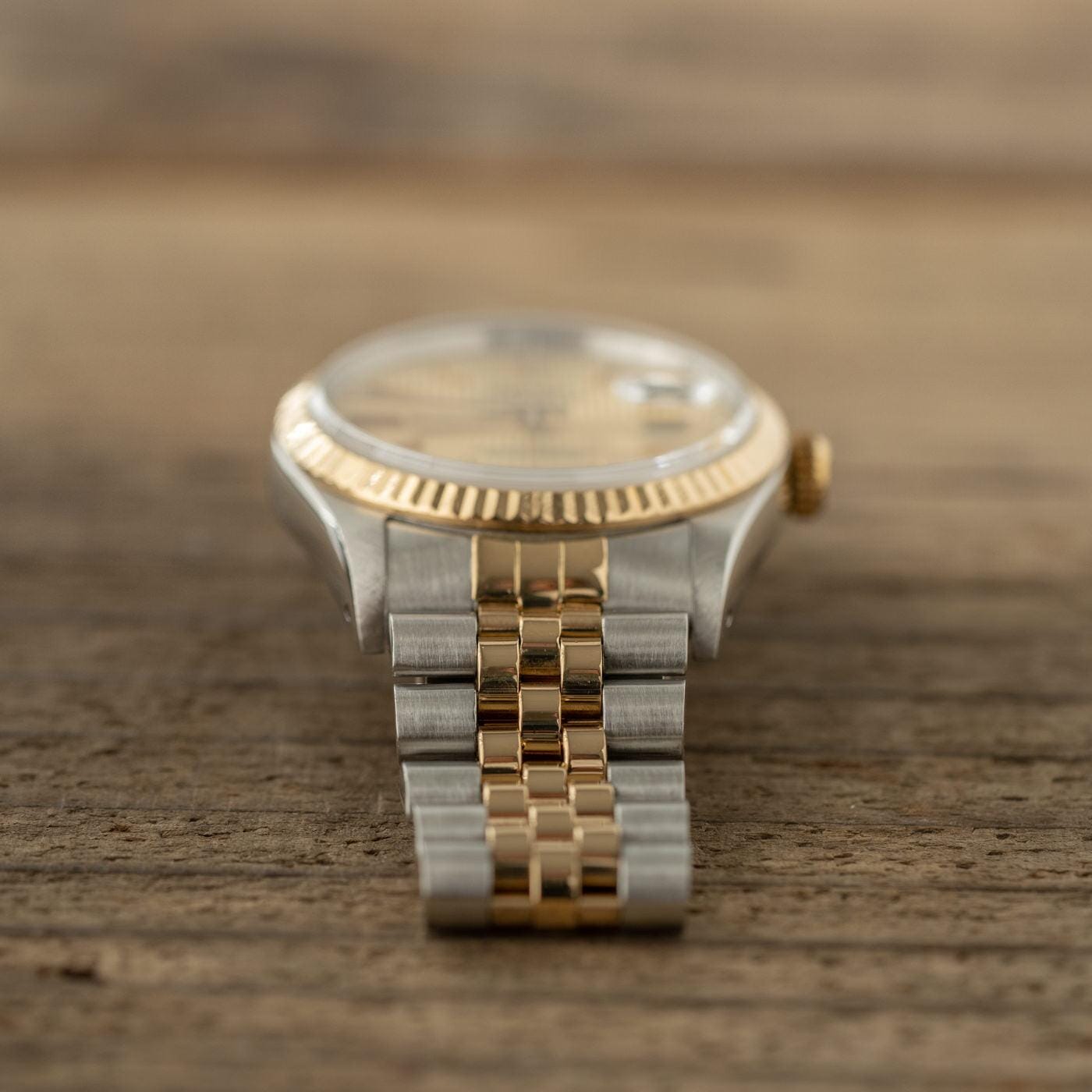The combination of stainless steel and gold is registered at Rolex under the name “Loresol”, and according to the rules, this one is called “Yellow Loresol”, but it’s more commonly known as a “combination”.