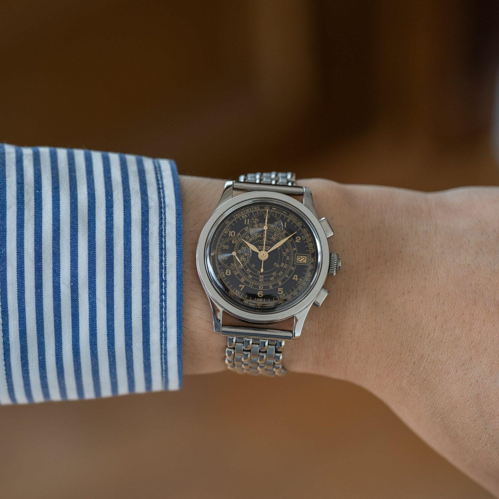 この時計は1953年に発表されたブラジル市場向け「クロノ・ジャネイロ」の復刻版で、1997年に3333本限定で販売されたモデルです。