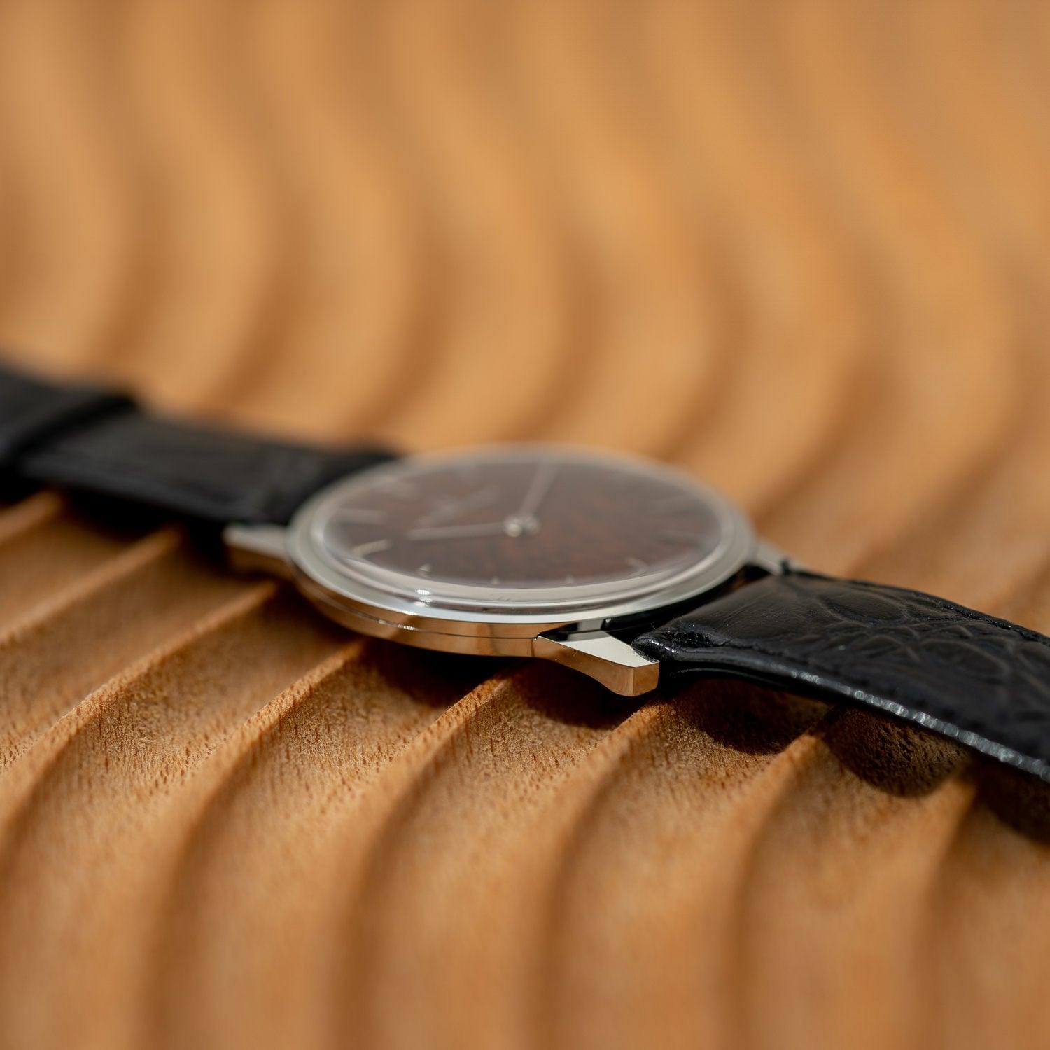 is not a flat print, but a three-dimensional dial that reproduces the unevenness of the bark, and the wood grain pattern differs depending on the watch, so it can be said to be unique.